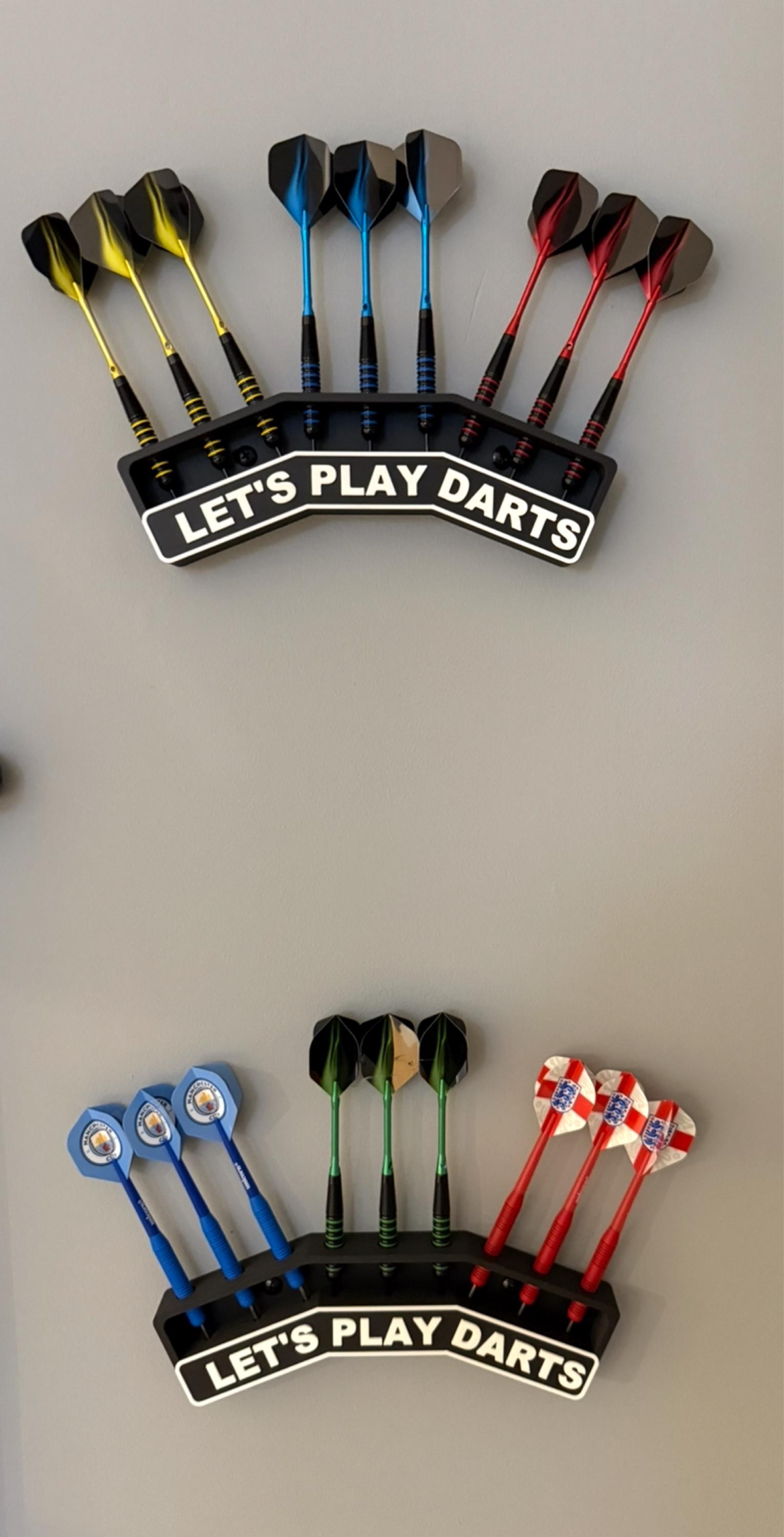 Elevate your dart game with our stylish Wall Mounted Dart Holder, featuring the engraved phrase "Let's Play Darts." This holder is not only practical but also crafted with precision using 3D printing technology, ensuring durability and a sleek design. Perfect for keeping your darts organized and ready for play, it comes in three distinct styles.