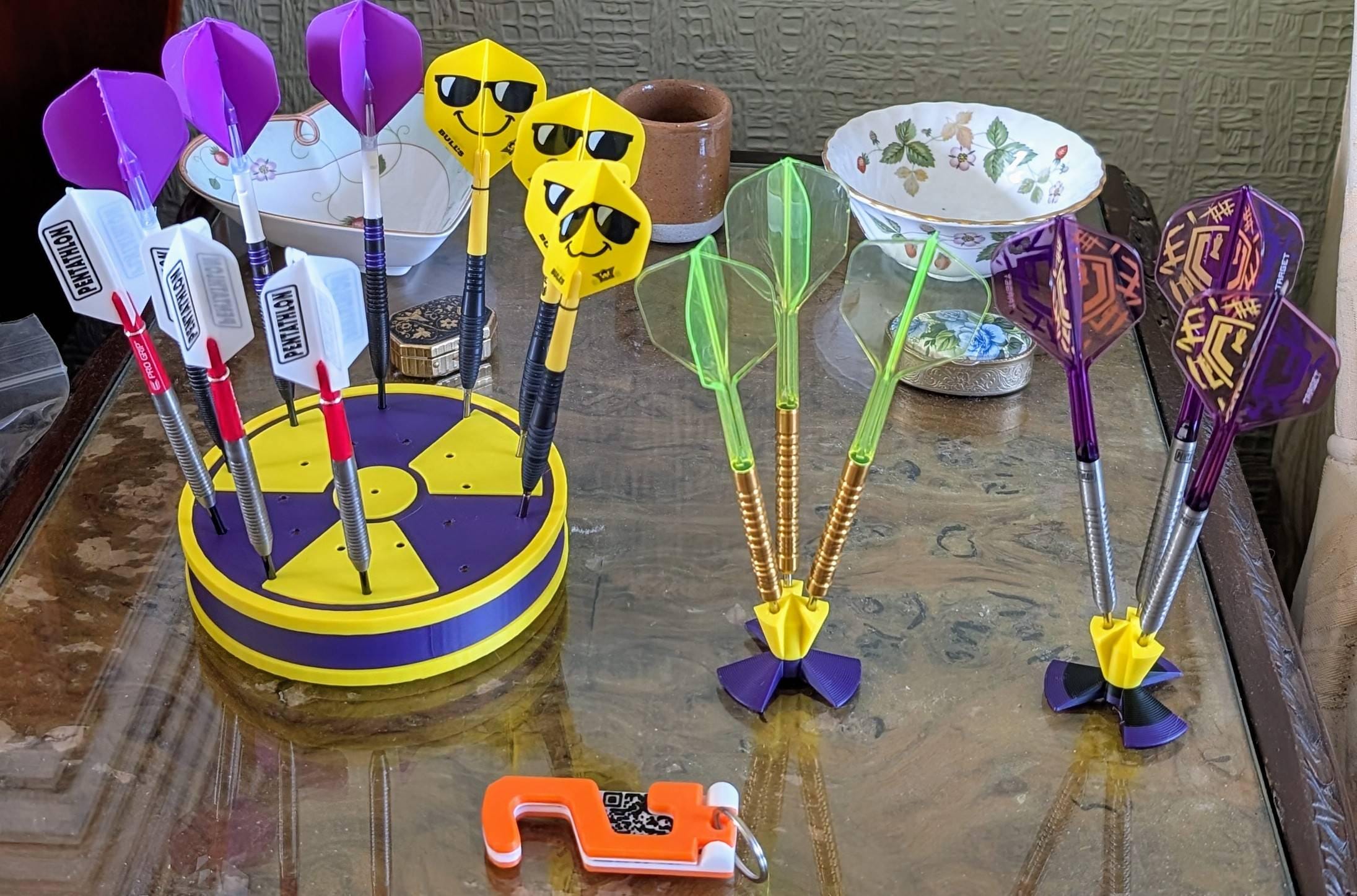 This this round stand in the shape of a nuclear warning sign in 2 color versions, perfect for your darts collection. With the ability to hold up to 21 darts, this round stand case is designed for convenience and practicality. Made from PLA+ material, this case is not only functional but also eco-friendly. The Dart Stand is a great way to display your darts in a stylish and organised manner. Whether you're a beginner or a seasoned player, this Dart Holder is a must-have for any dart board owner.