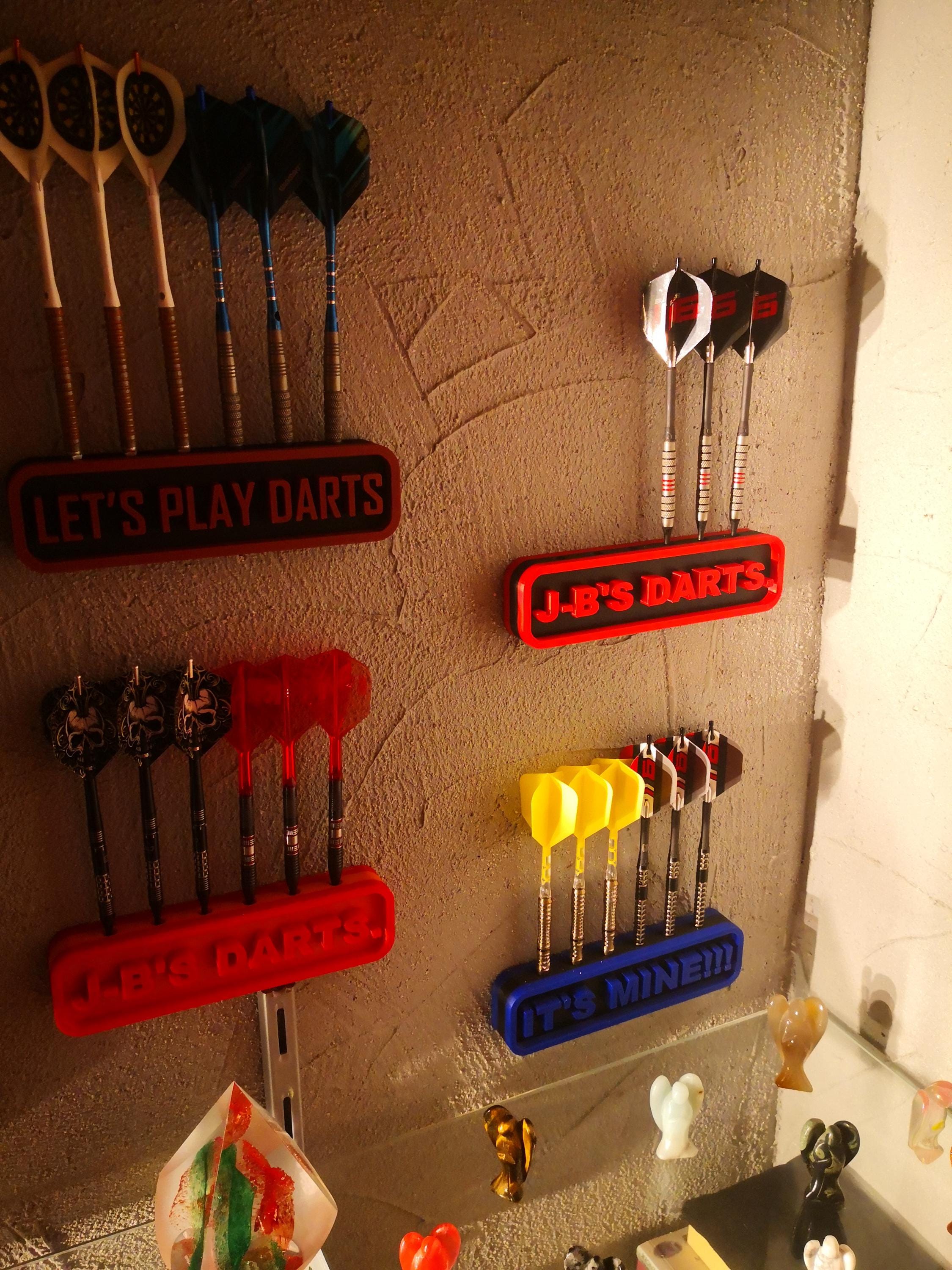This 3D printed dart holder is both practical and stylish, featuring 9 individual slots to securely hold your darts while displaying them in a sleek and modern way. The bold "Let's Play Darts" engraving adds personality, making it an ideal gift for dart players, bar owners, or game room enthusiasts.