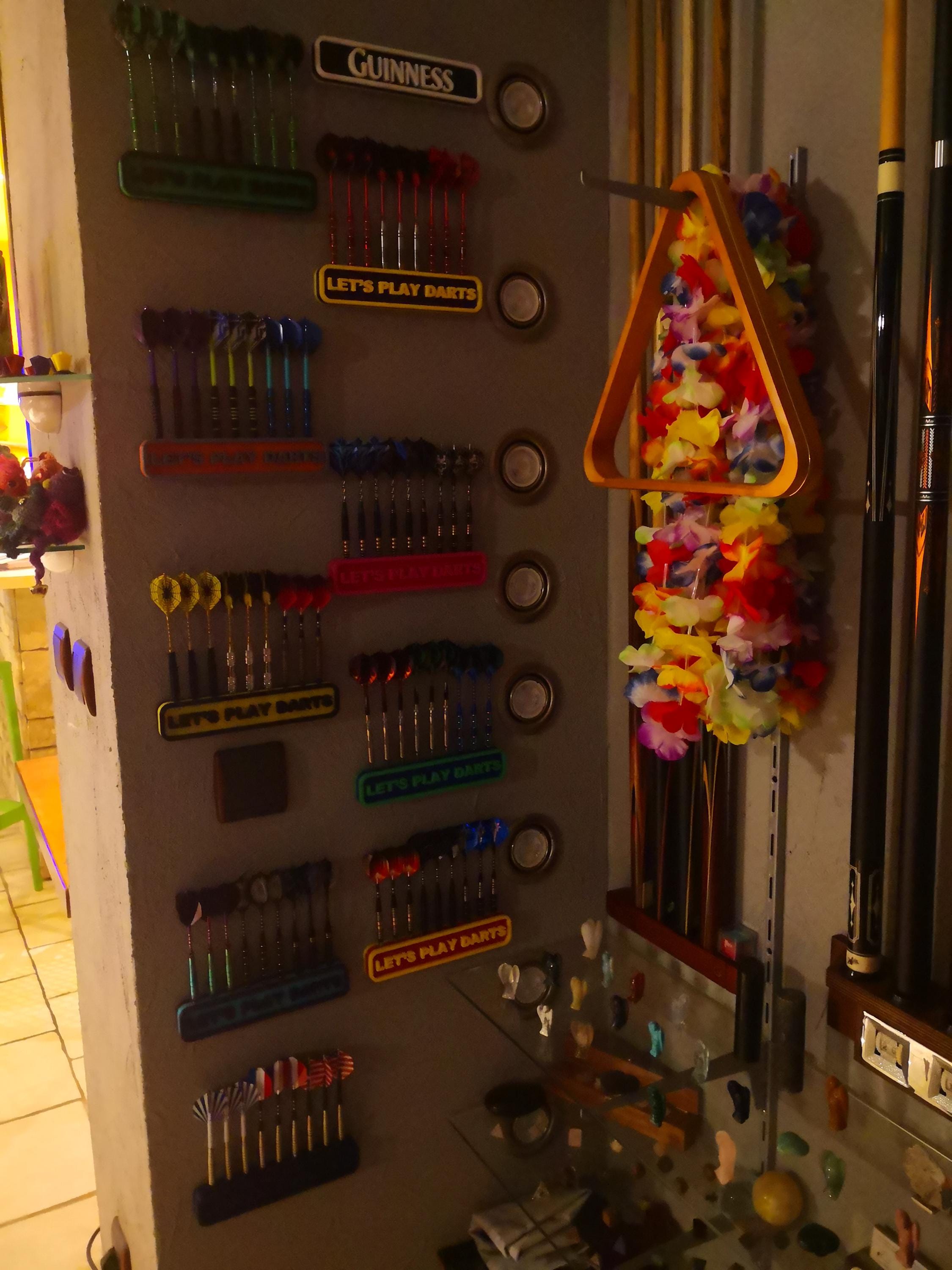 Keep your darts perfectly organized and always within reach with this 9-slot "Let's Play Darts" holder - a must-have accessory for every dart lover or game room setup.