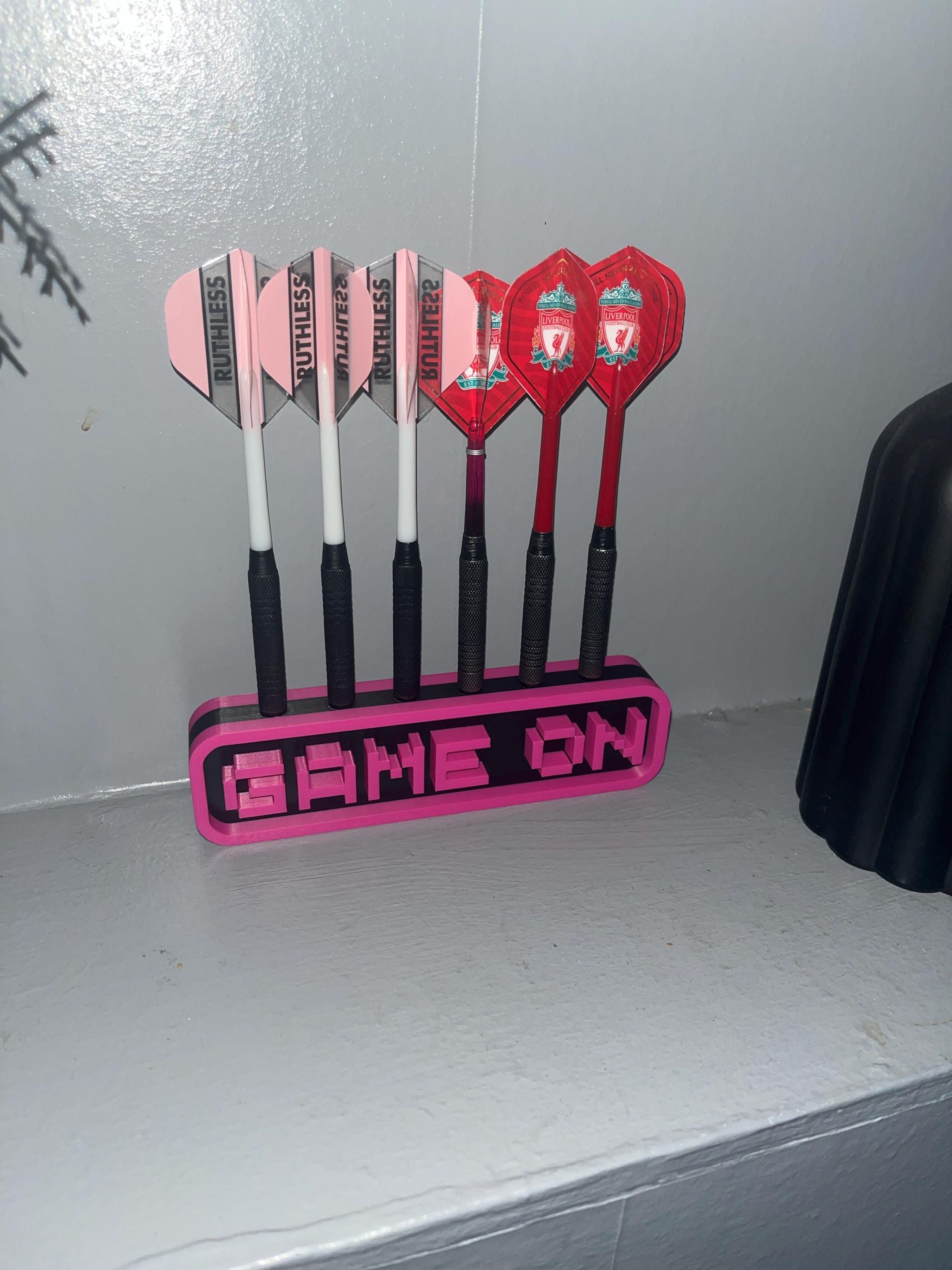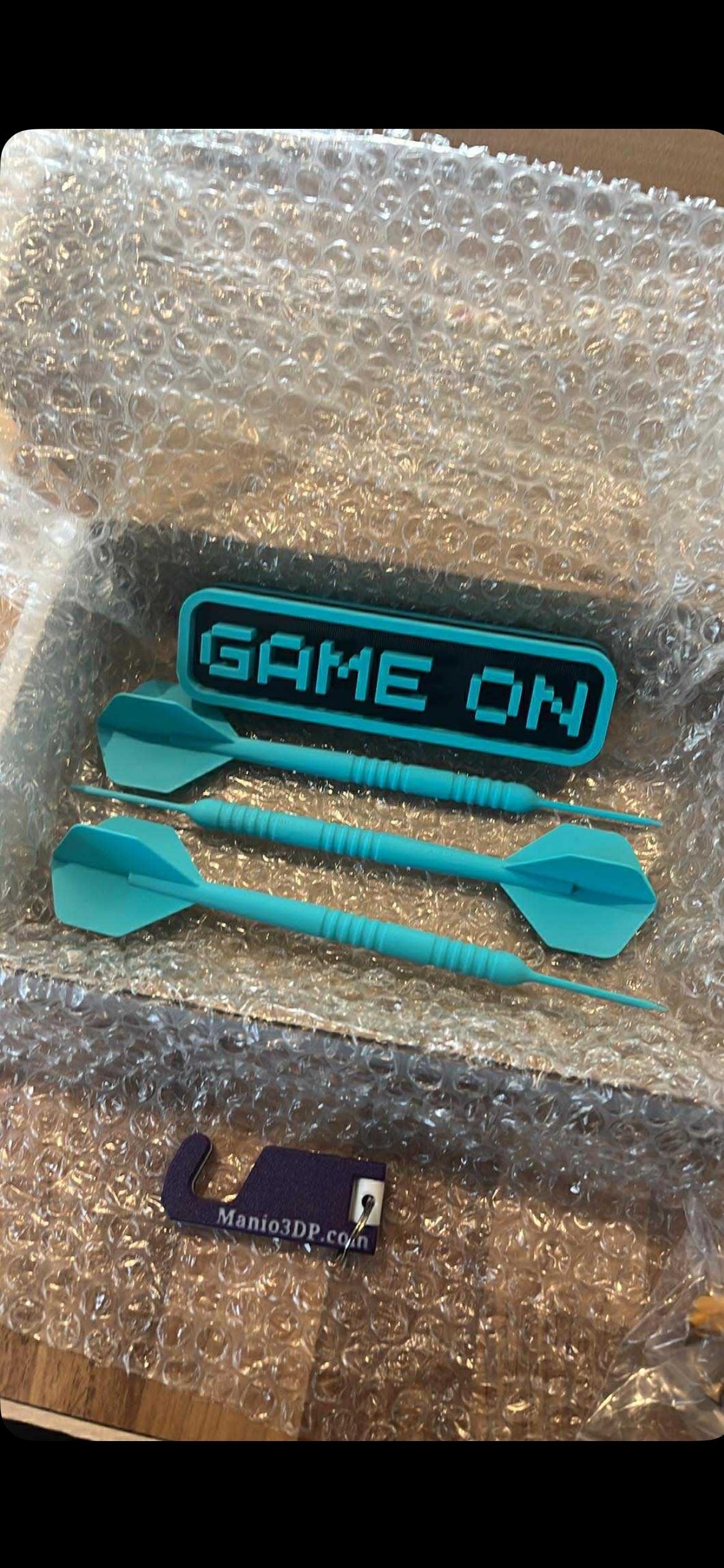 Crafted using advanced 3D printing technology, this holder combines durability with a sleek, modern aesthetic. "GAME ON" inscription adds a personal touch, making it a thoughtful gift for any darts-loving.