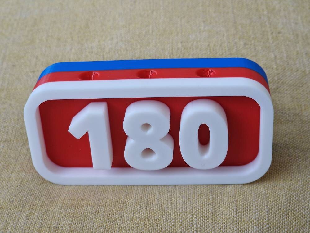 Crafted using advanced 3D printing technology, this holder combines durability with a sleek, modern aesthetic. " 180 " inscription adds a personal touch, making it a thoughtful gift for any darts-loving.