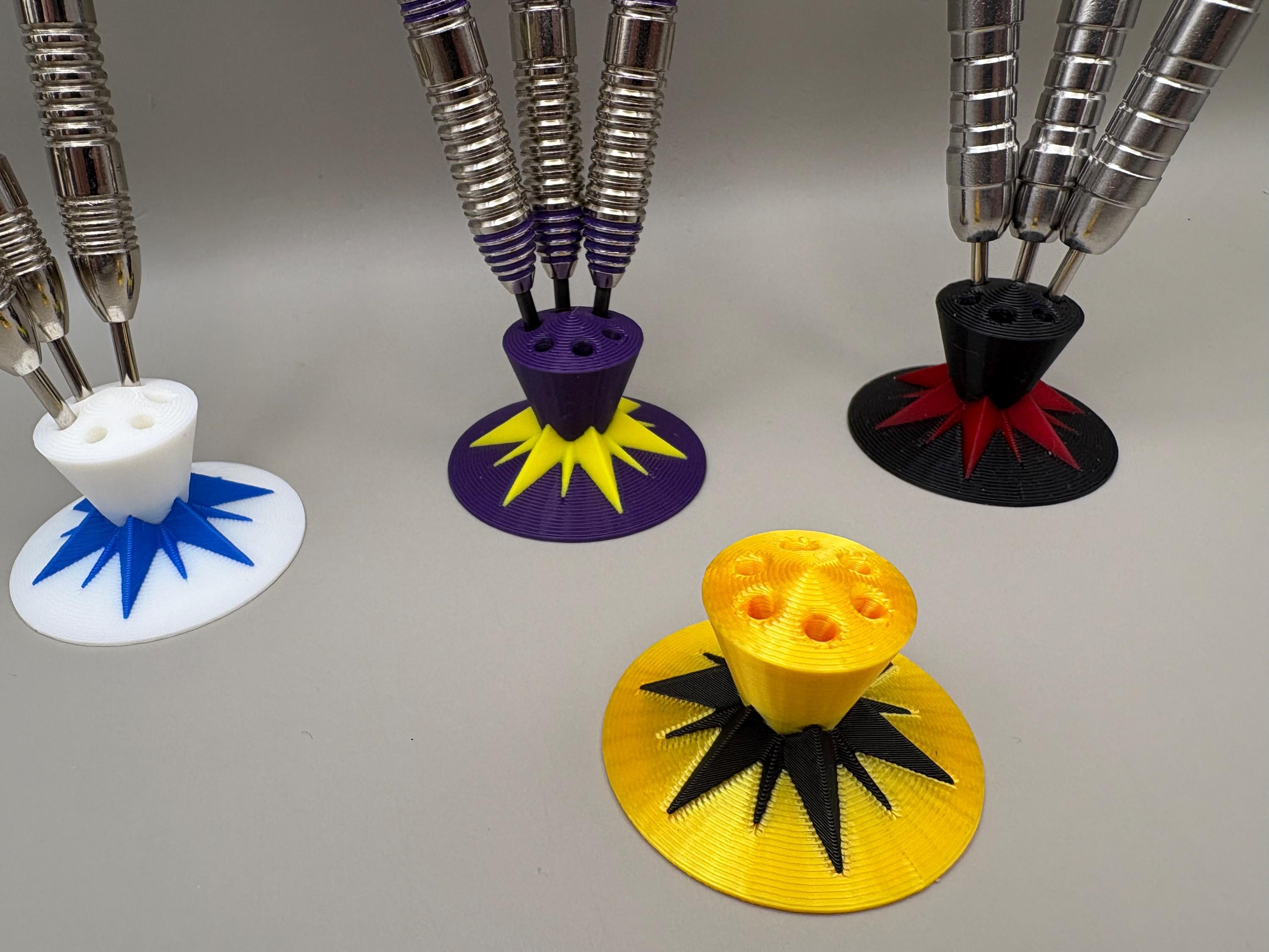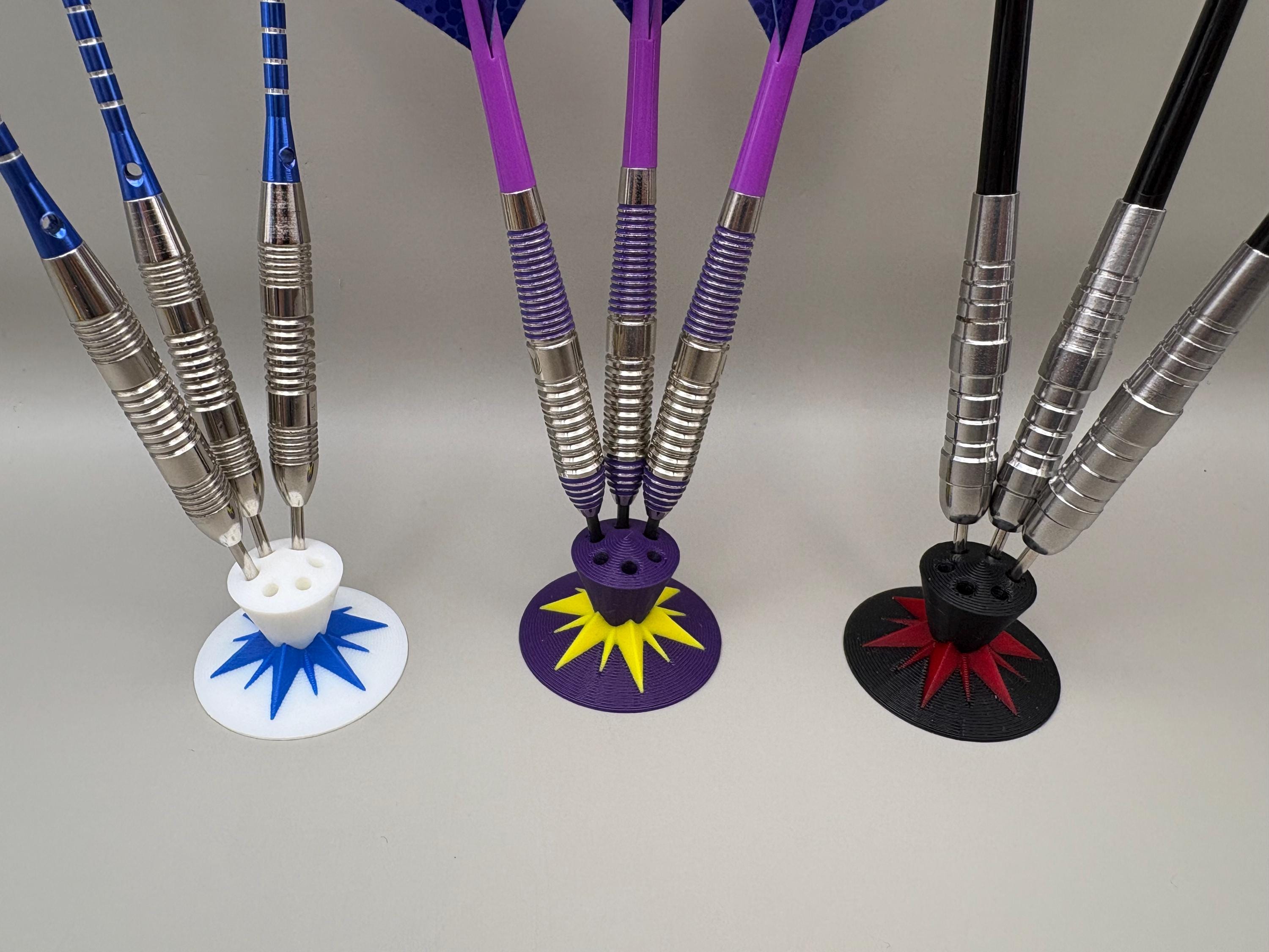What you get: a set of 2 dual-color dart holders, each holds 6 darts (12 total). Precision 3D printed for a clean look and everyday durability. Choose from 18 color combinations to match your setup or game room decor.