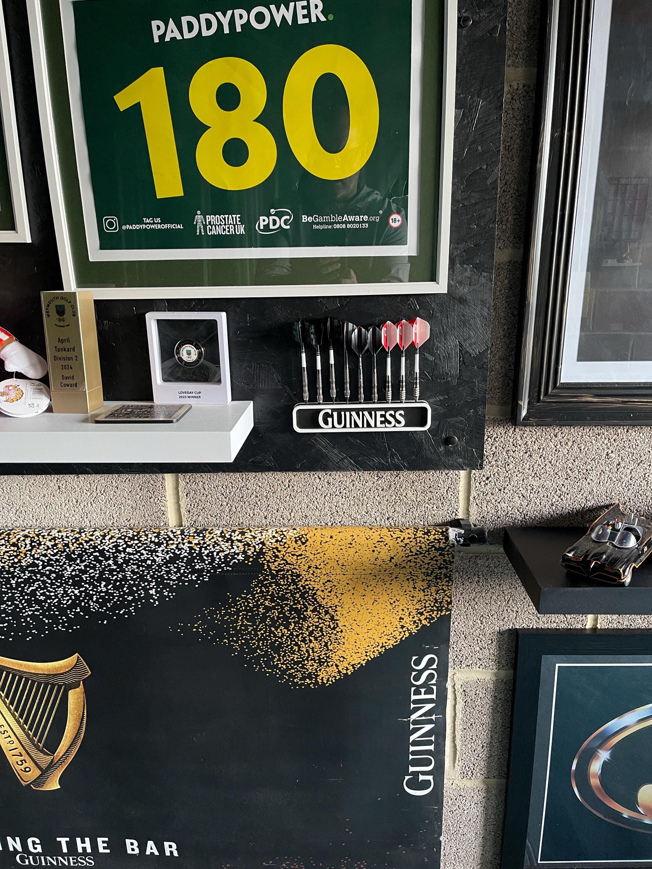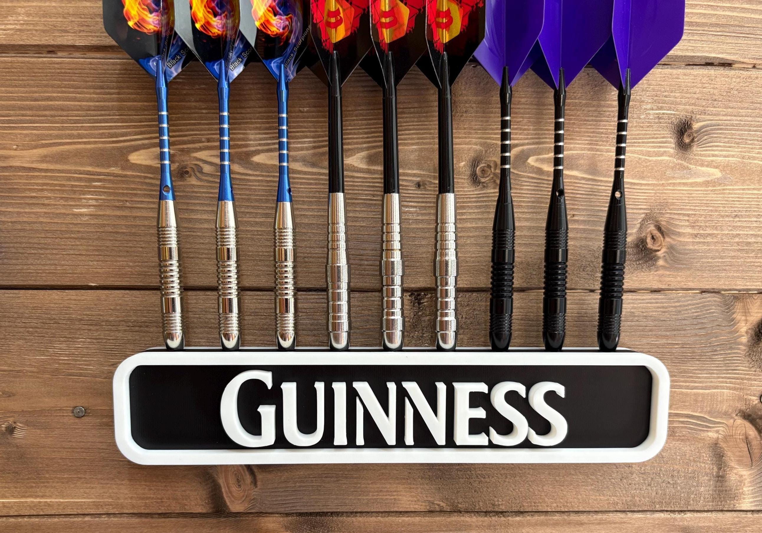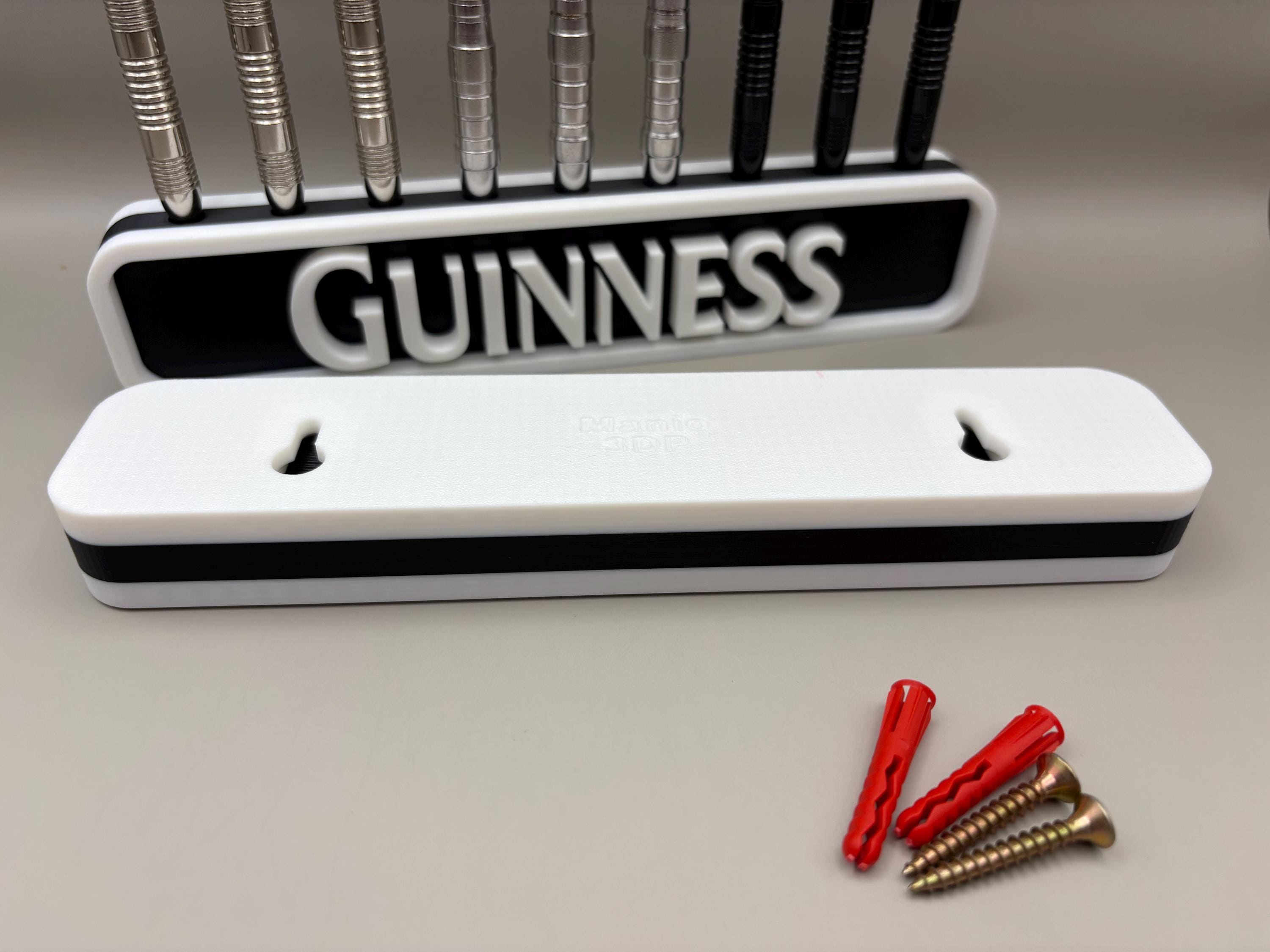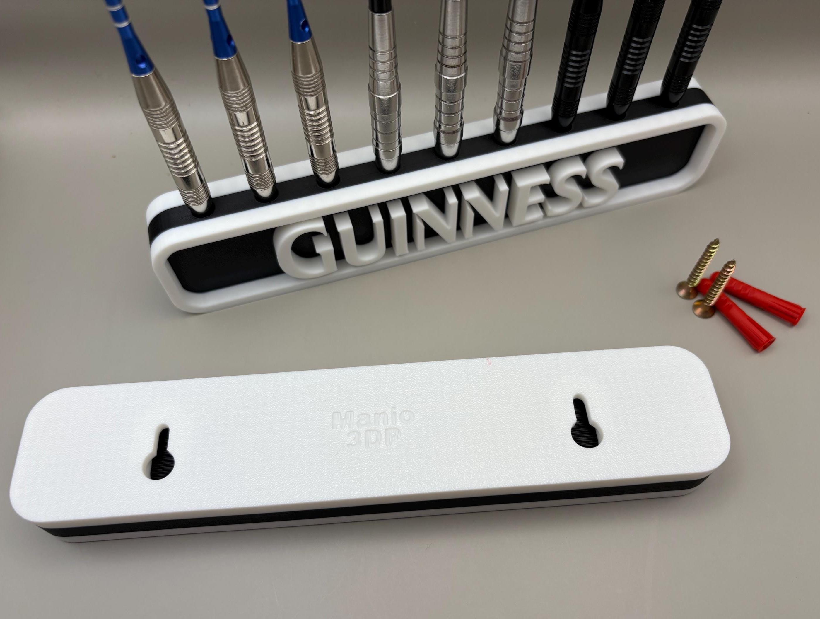 This vintage-inspired 3D printed dart holder adds a touch of Irish pub charm to your games room. You can place it on a shelf or mount it on the wallscrews are included. The holder easily slips onto the mounted screws and can be removed whenever needed.