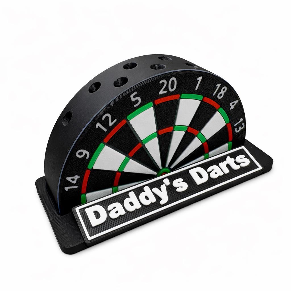Showcase your favourite darts in style with this personalised dart holder display. This unique 3D printed dart stand is designed to safely store and display up to 9 darts while adding a personalised touch to your setup.
